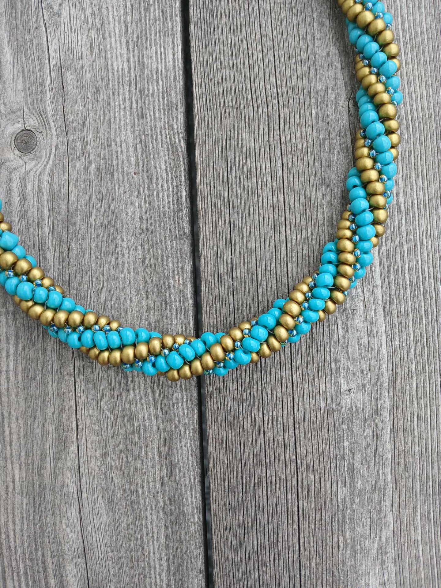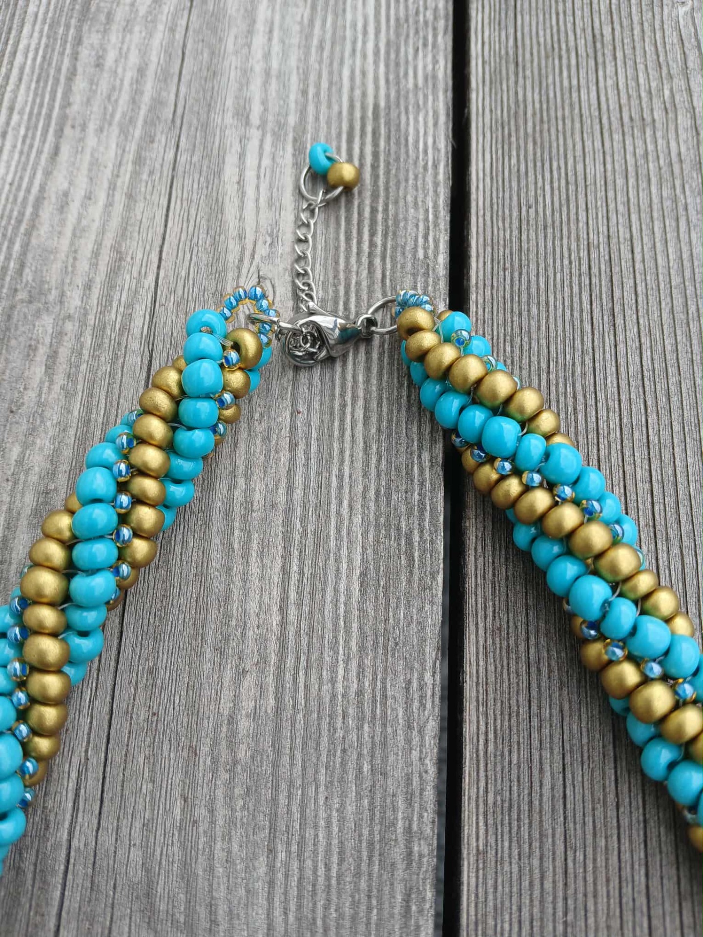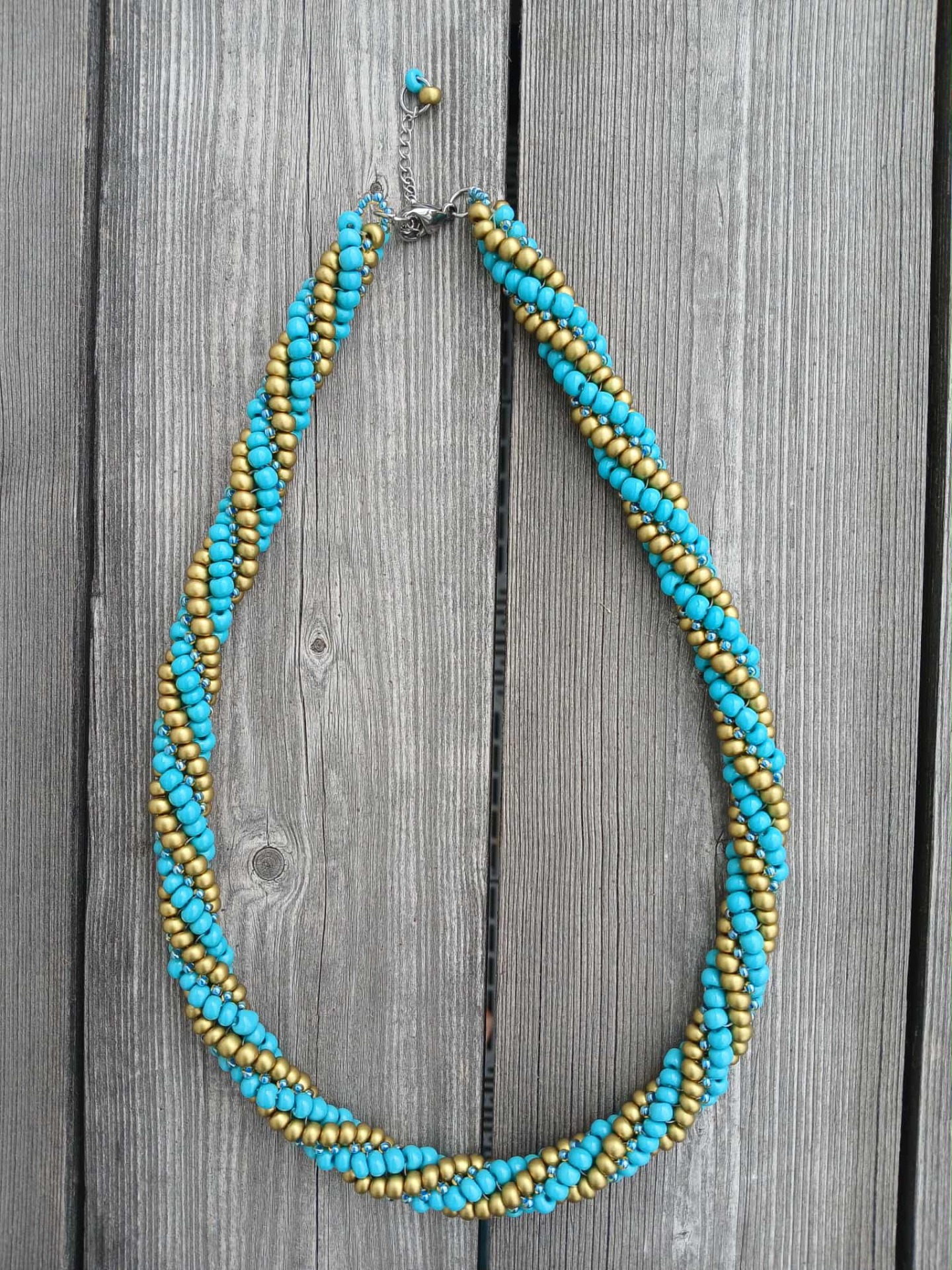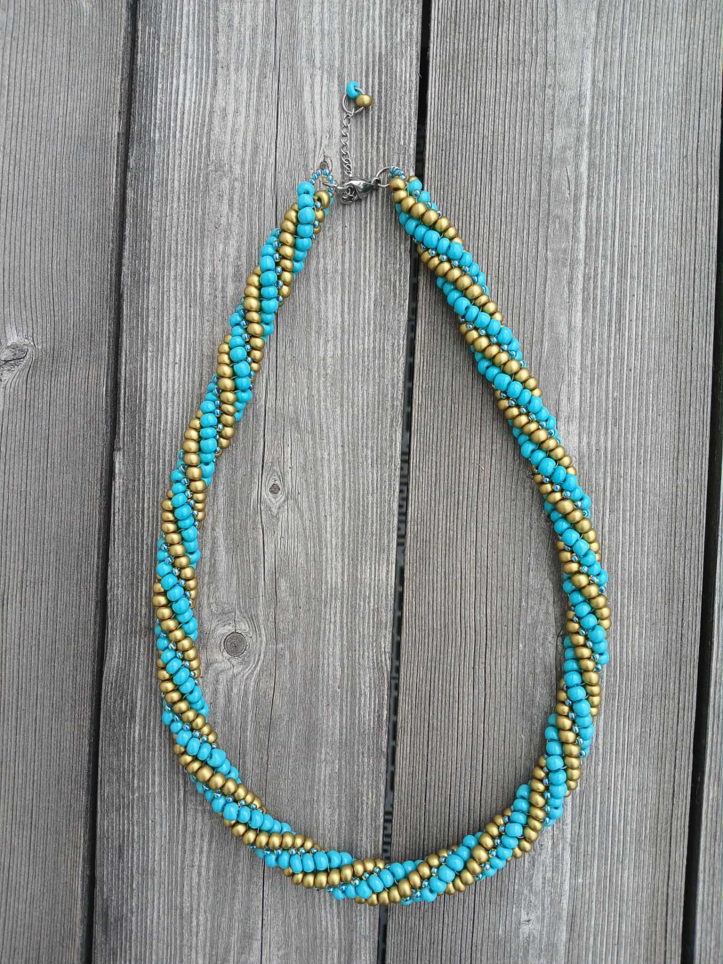- Halsband "Golden nr 2" består av många, många, många Seed Beads av glas, stora och små i olika färger.