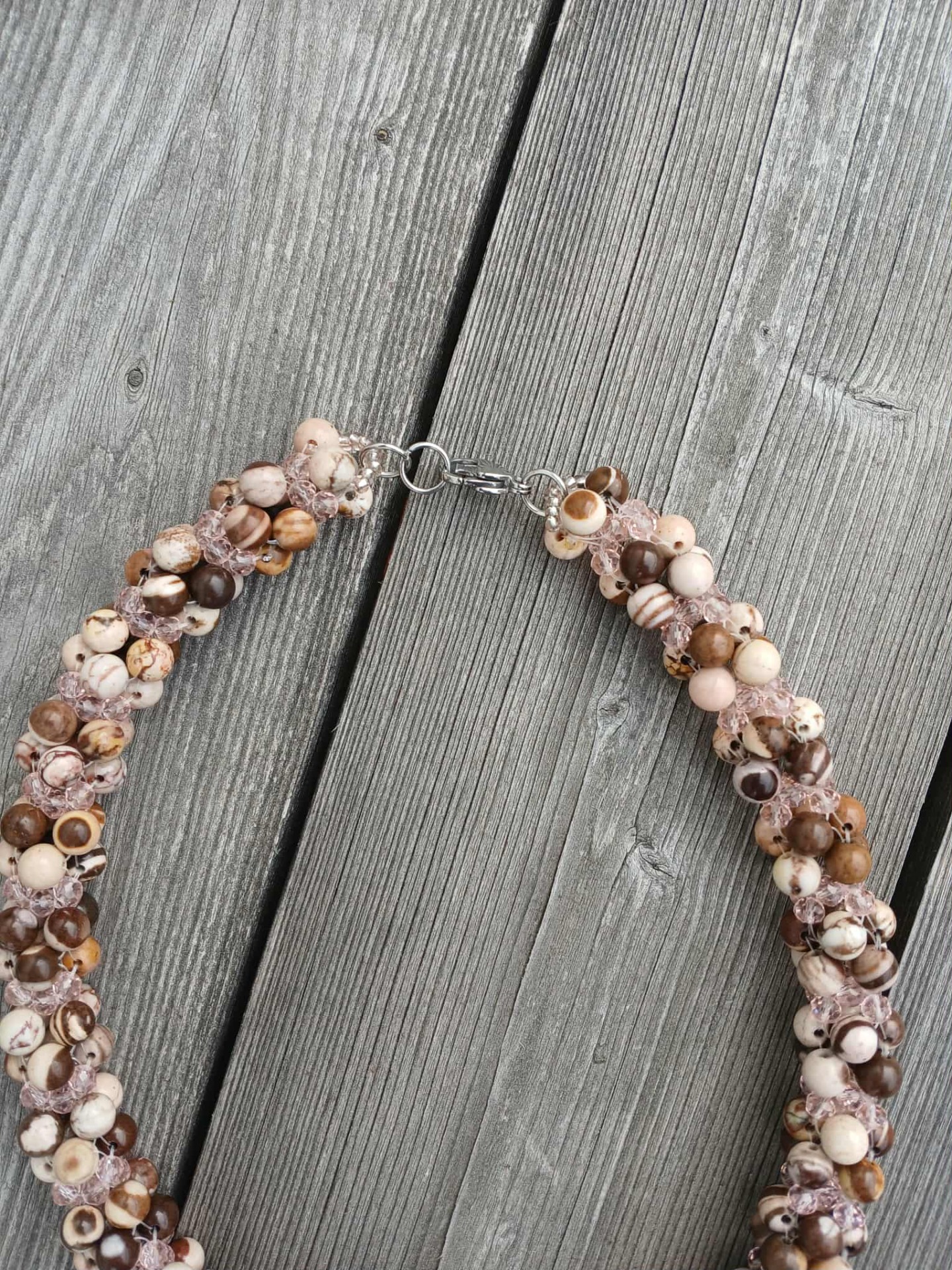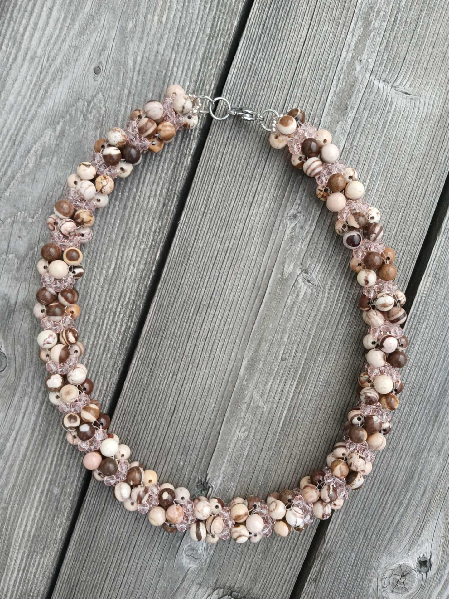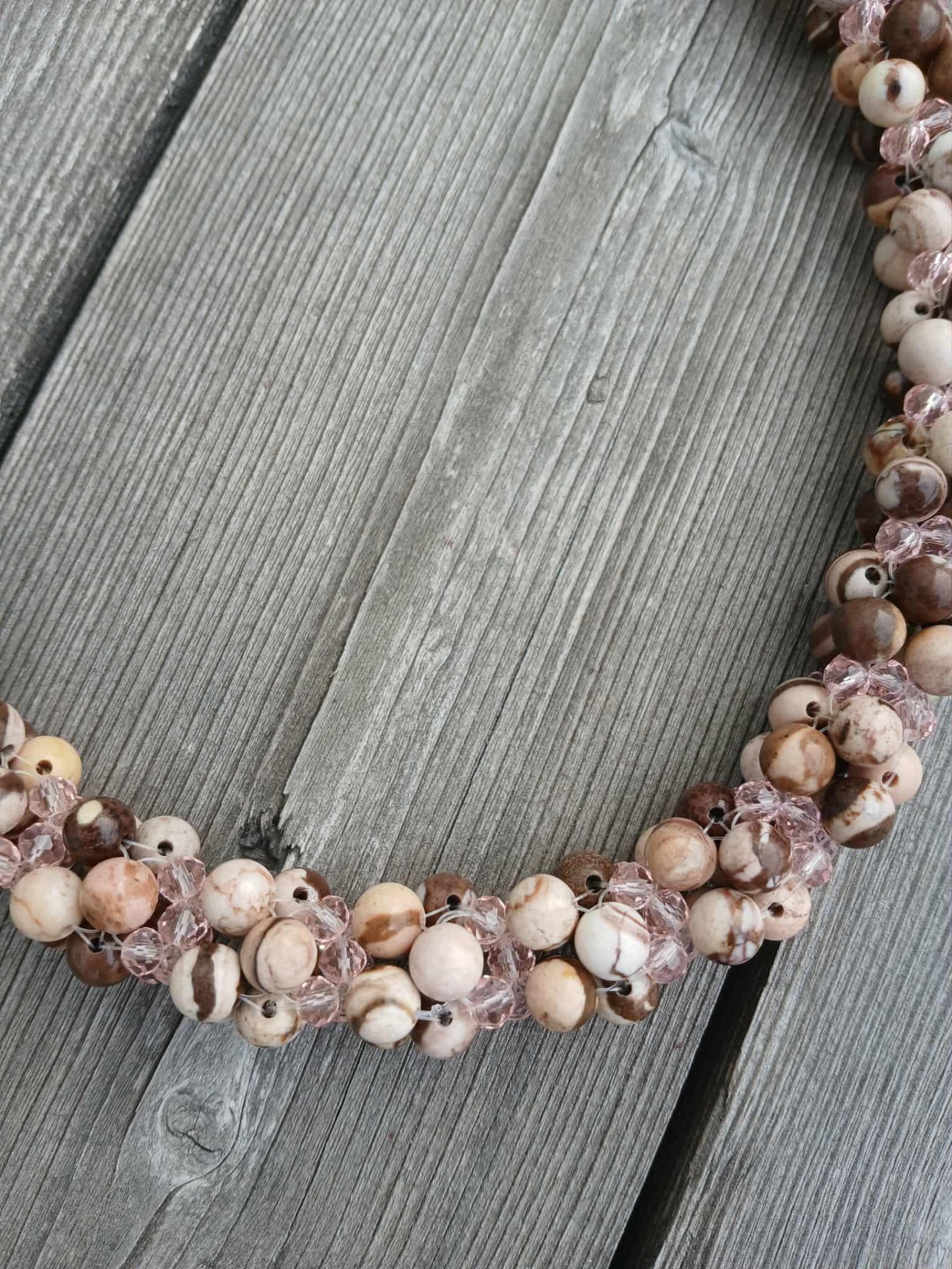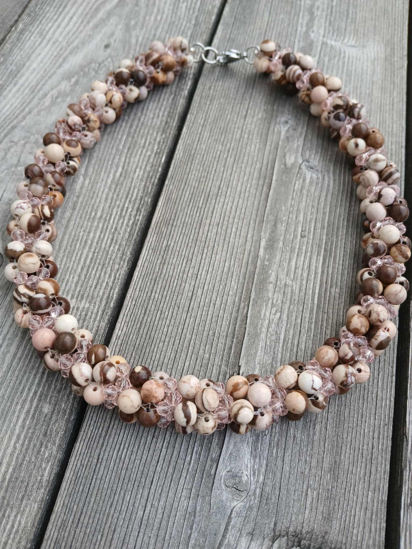 - Halsband "Jordnära" består av Australiensisk Zebra Jaspissten och Österrikiska fasetterade kristallglas stenar.