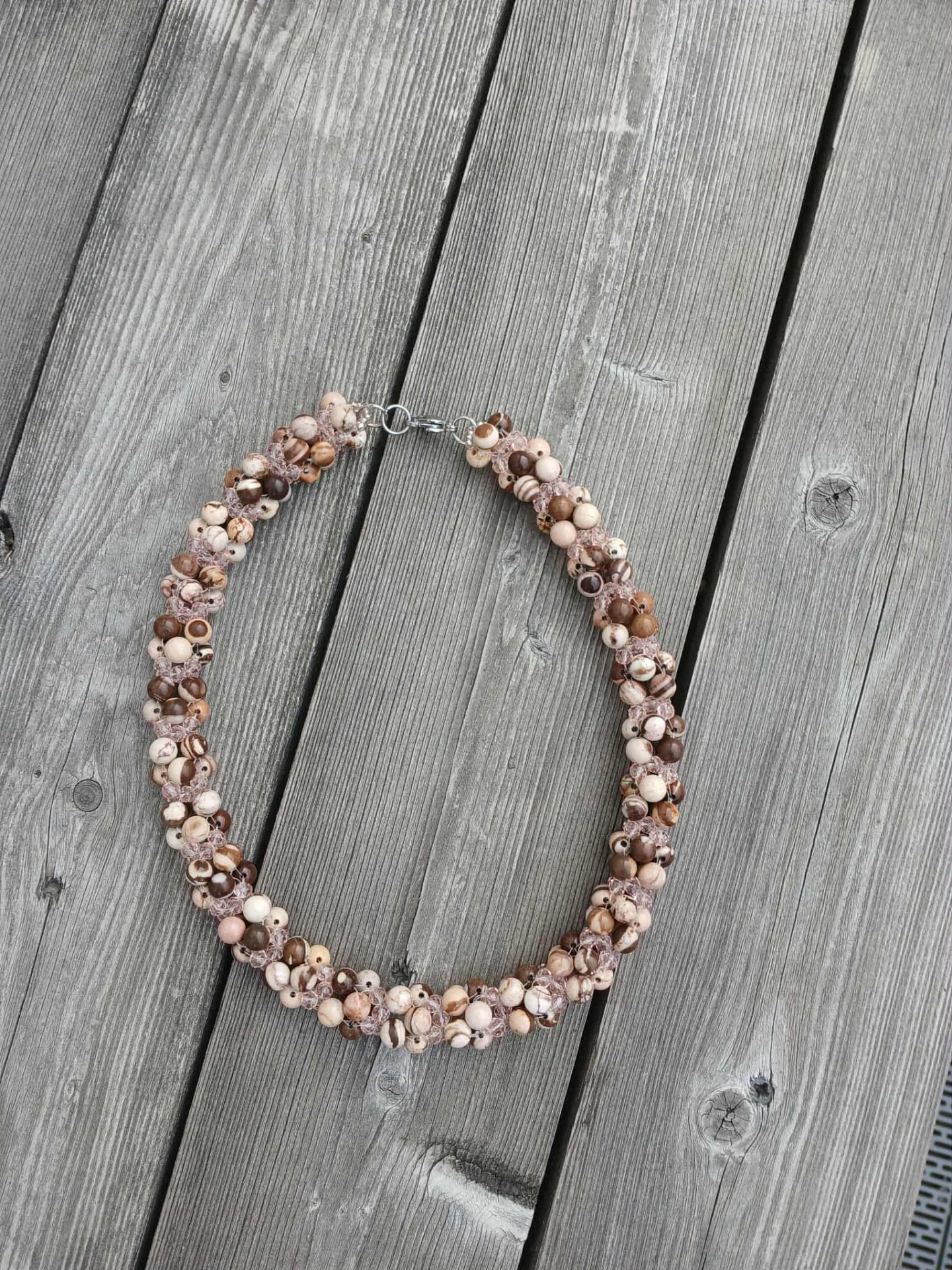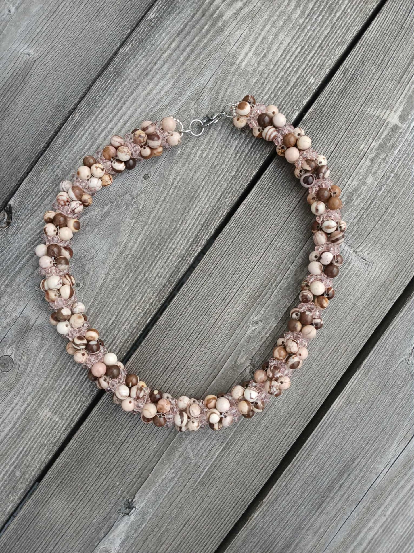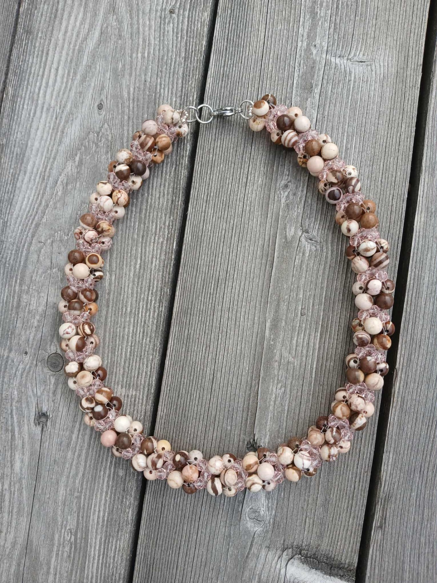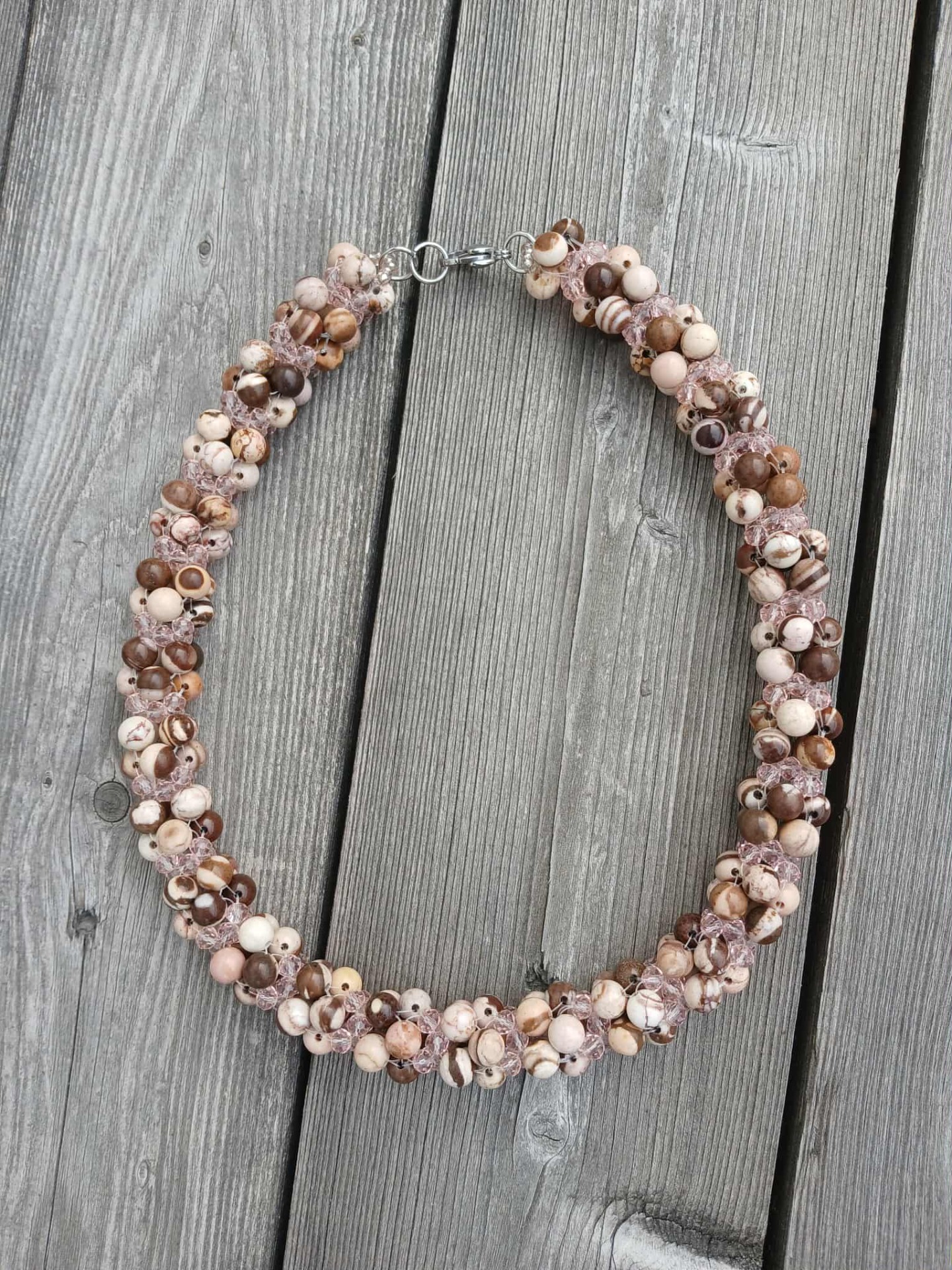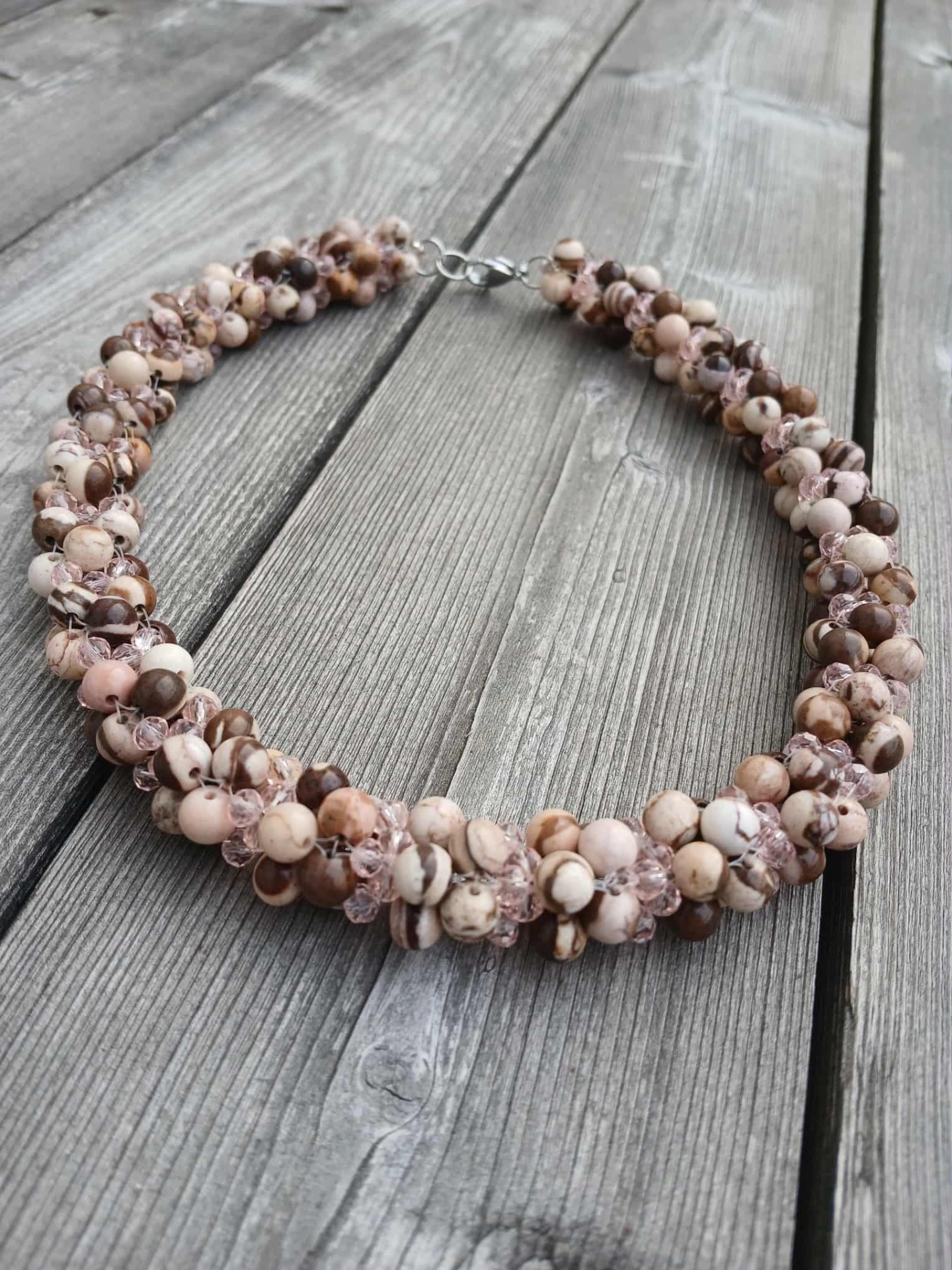 - Halsband "Jordnära" består av Australiensisk Zebra Jaspissten och Österrikiska fasetterade kristallglas stenar.