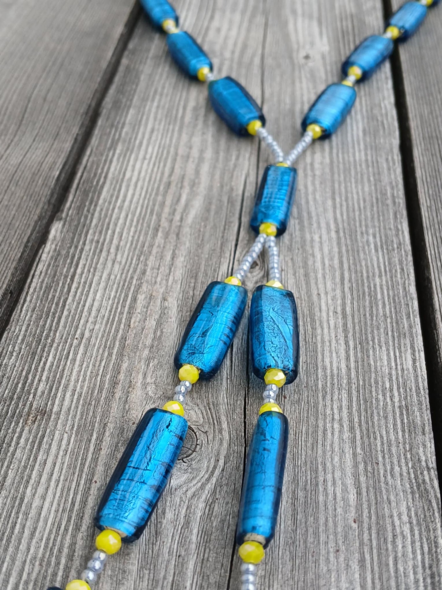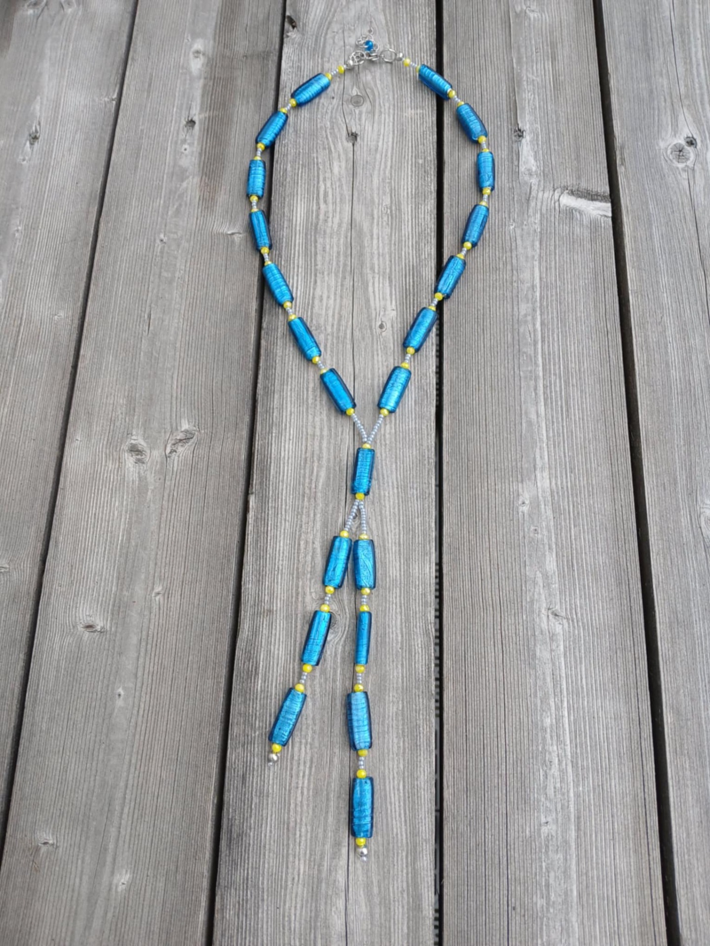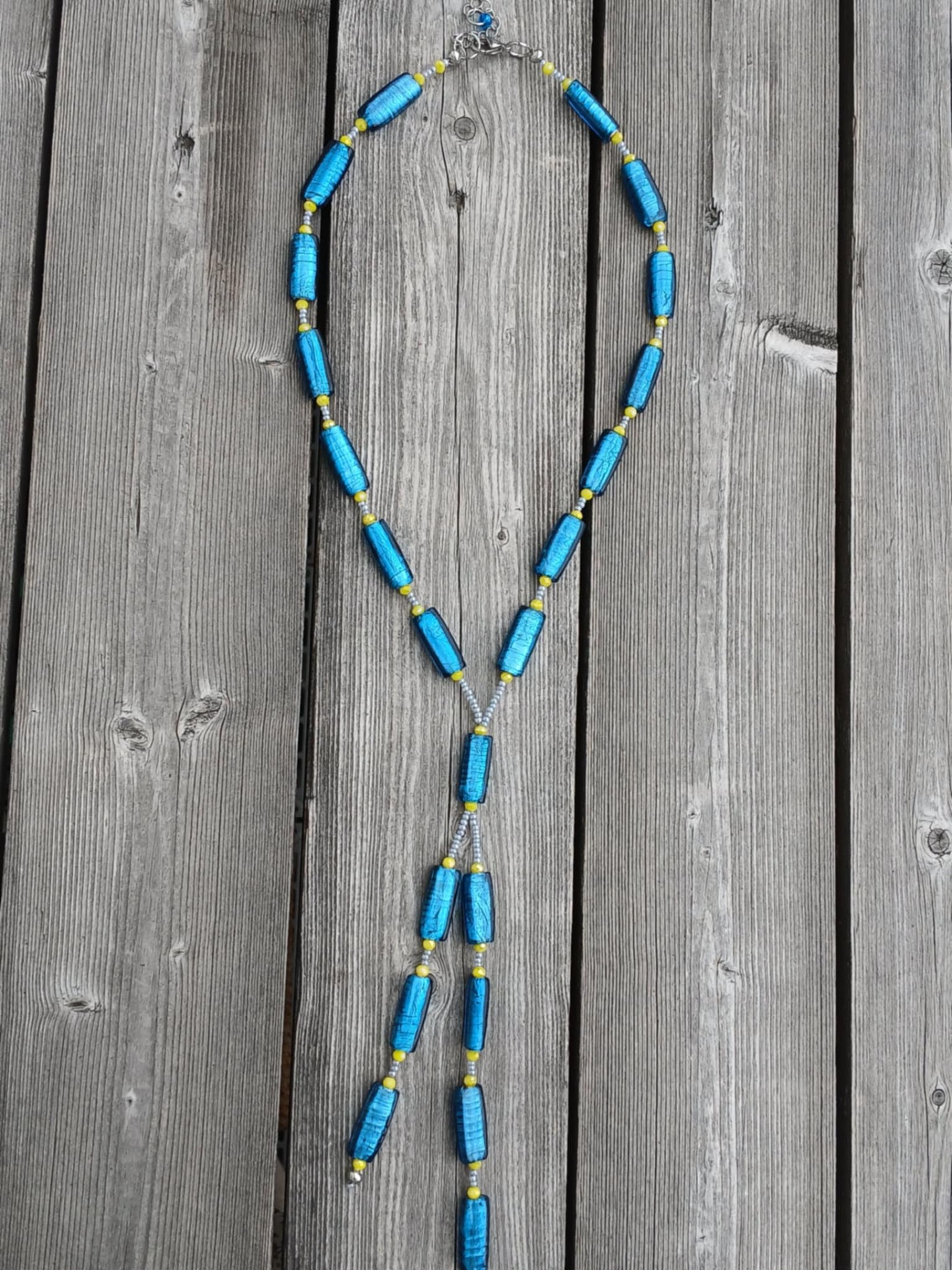 - Halsband "Octopus" består av glaspärlor, både små och stora.