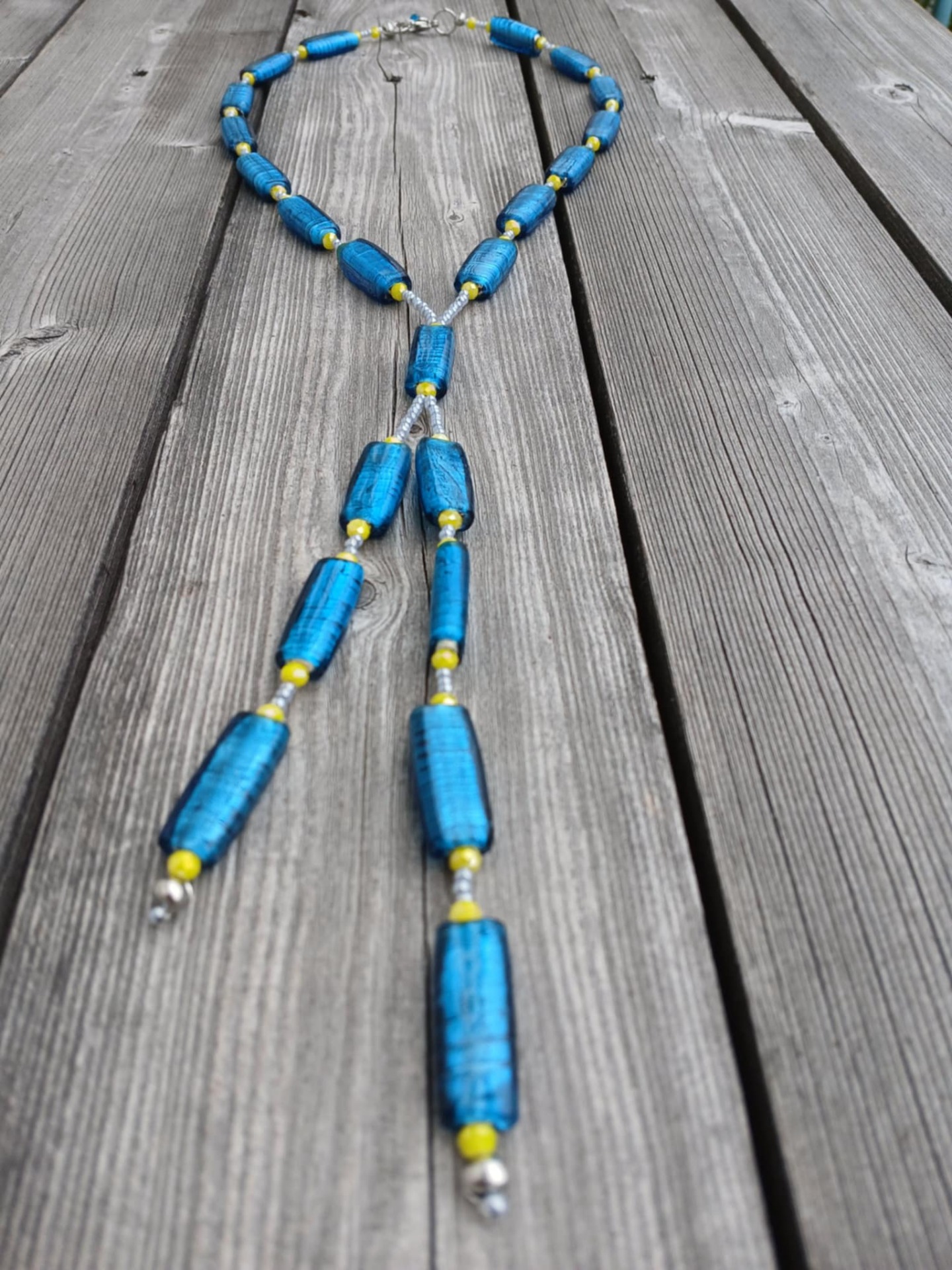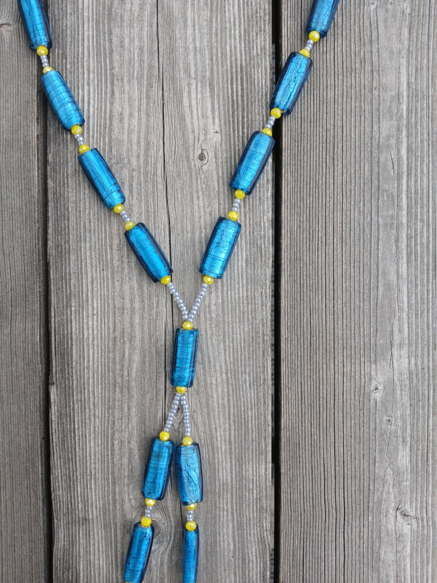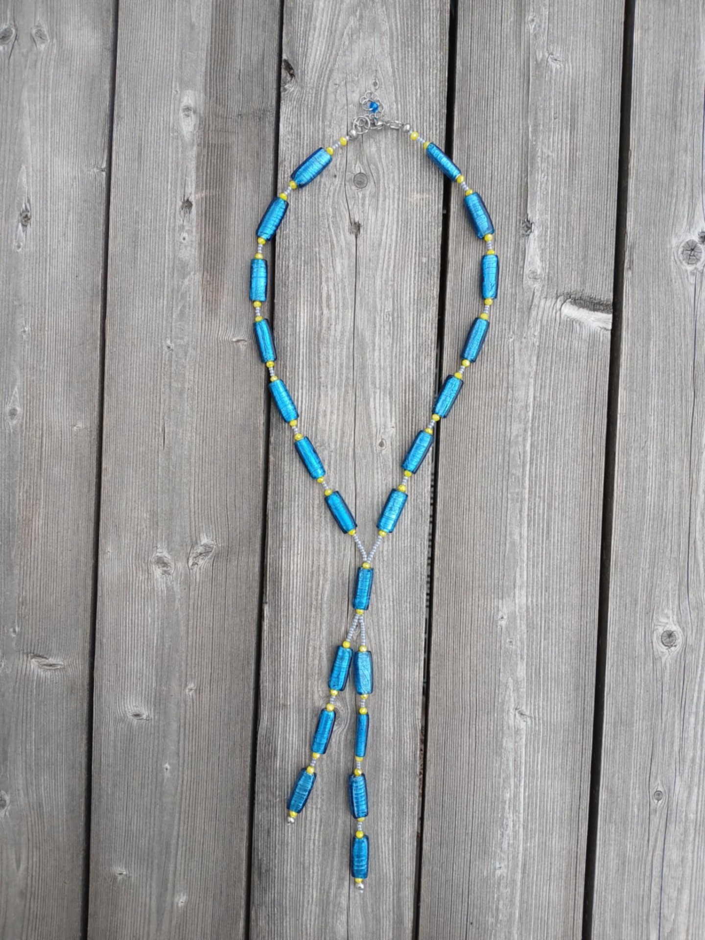 - Halsband "Octopus" består av glaspärlor, både små och stora.
