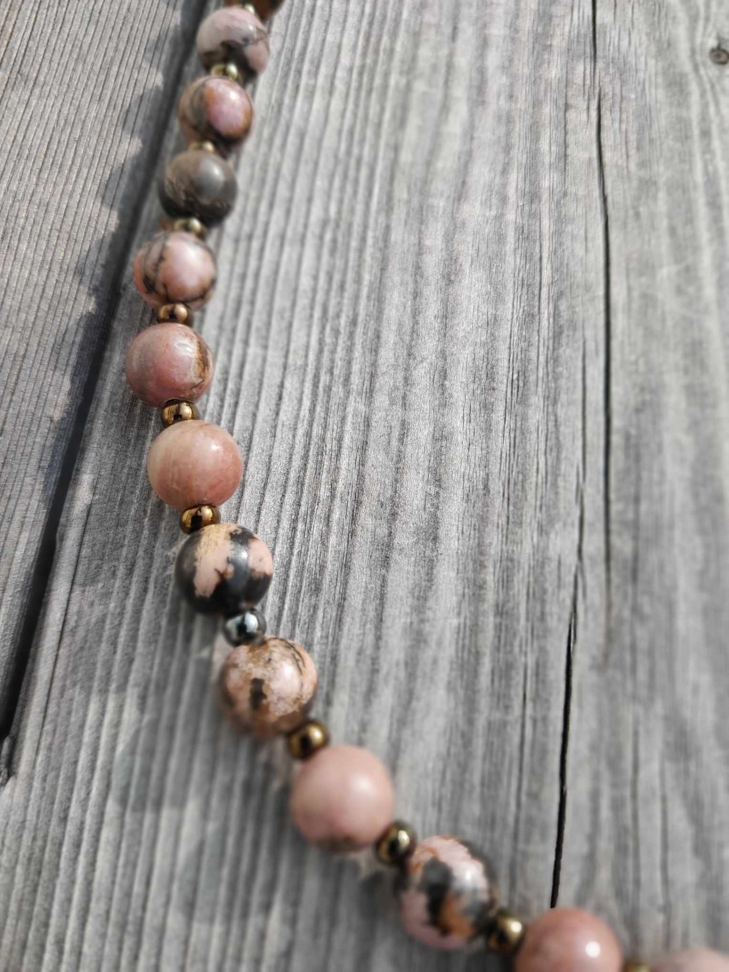 - Rodonit Stenen sägs vara kärlekens sten. Bär halsbandet för att påminna dig om att det är lika viktigt att älska dig själv, som att älska andra runt omkring dig.