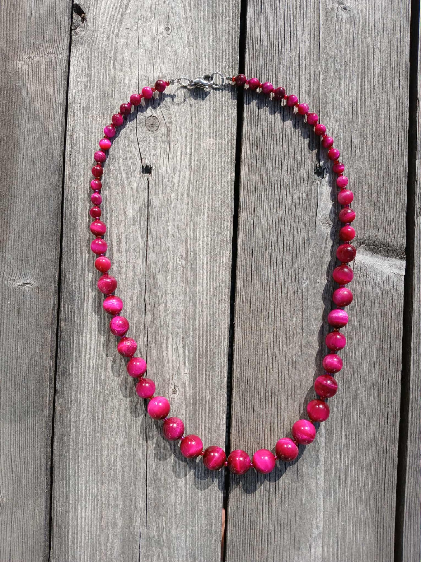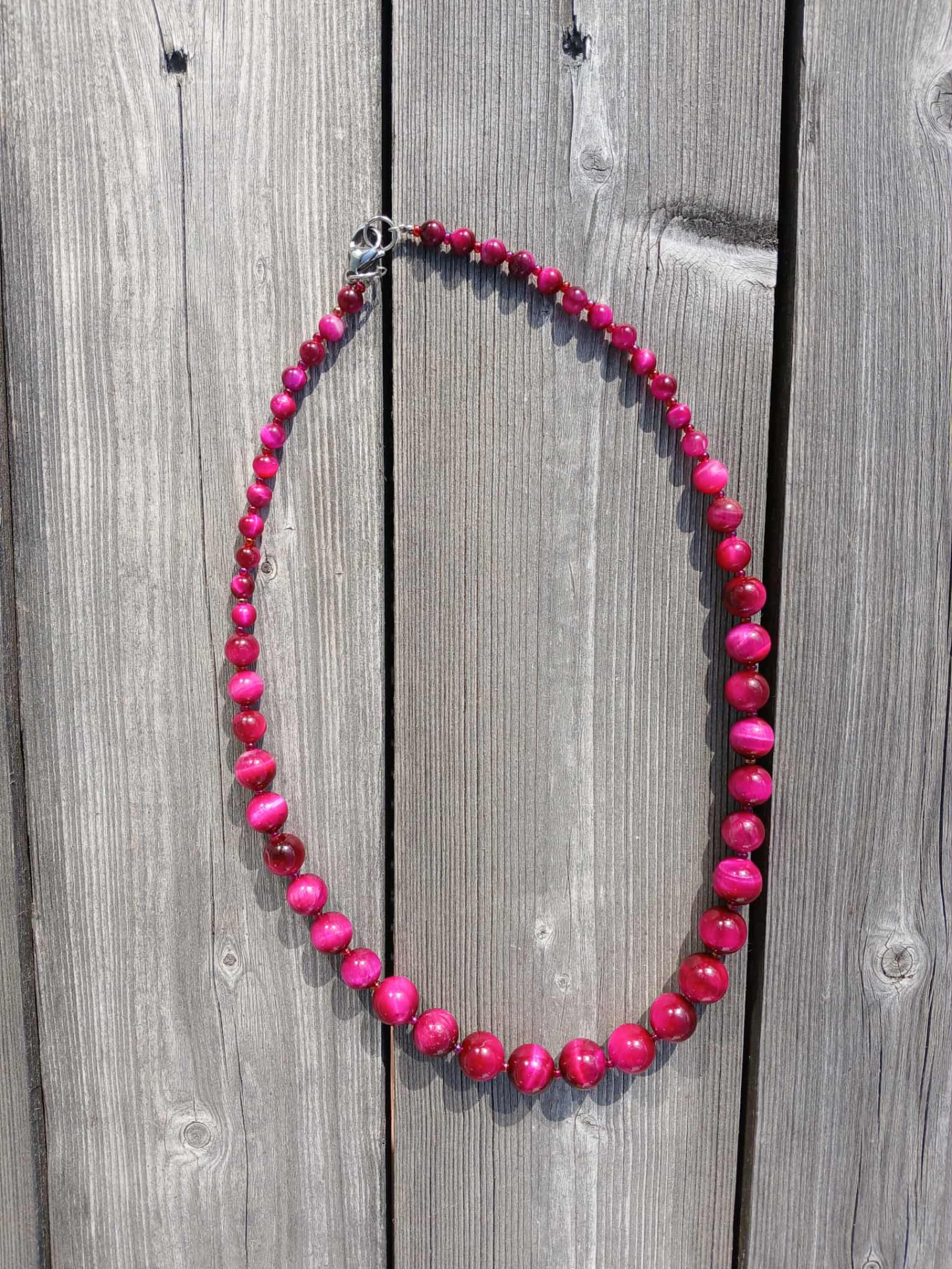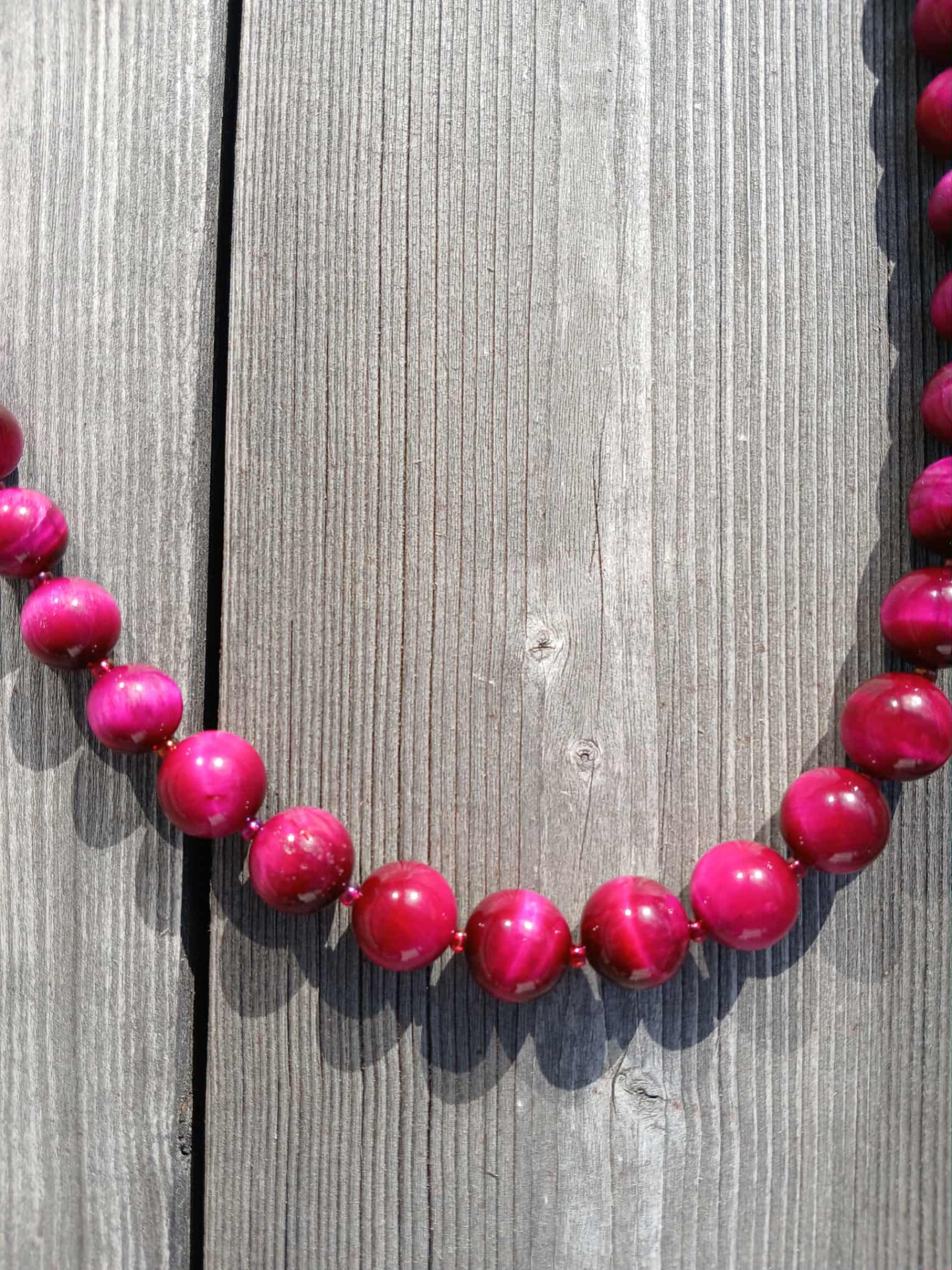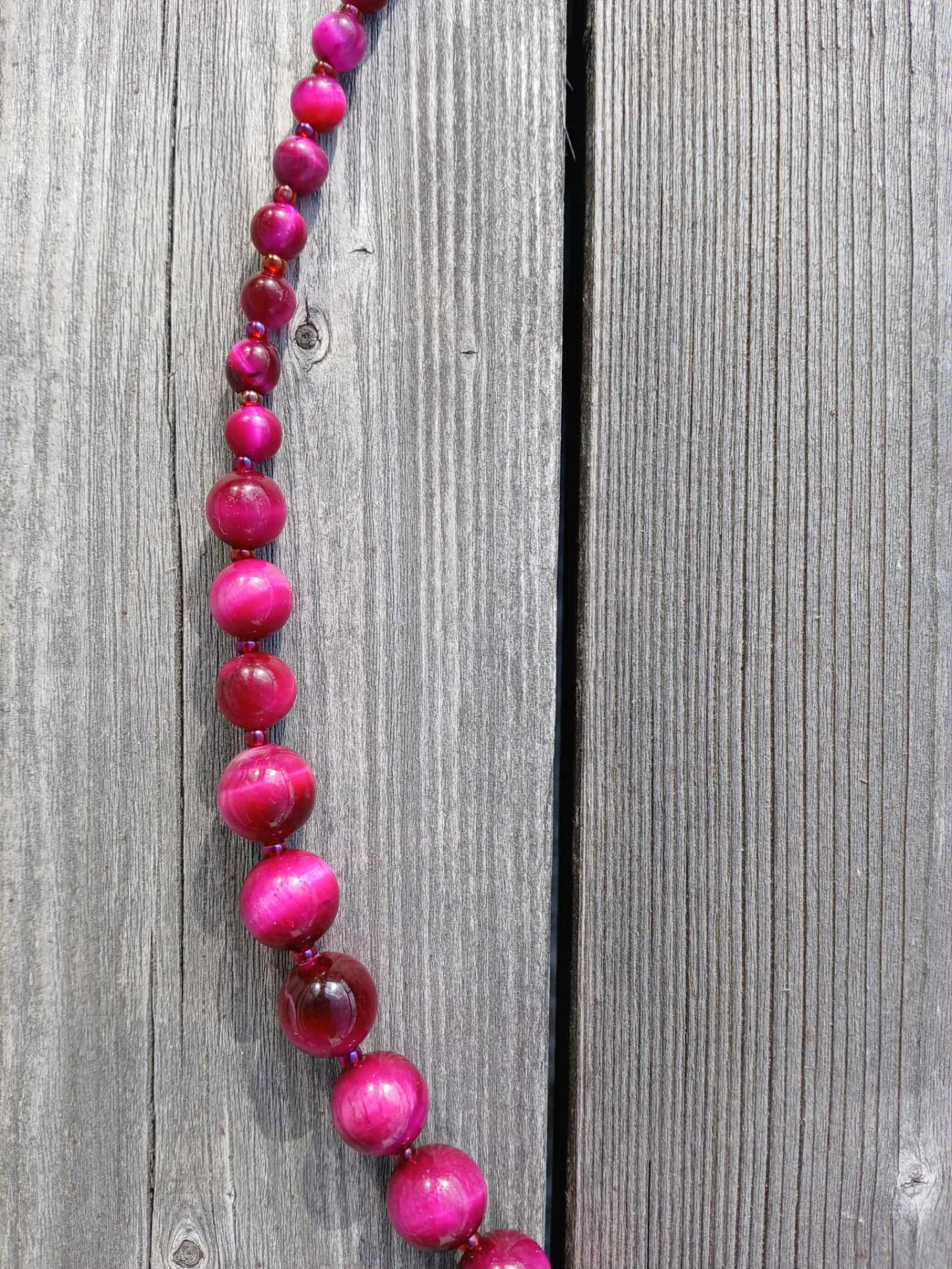- Halsband "Tiger Eye - Rose nr2" består av rosa Tiger Eye sten och rosa Seed beads av glas.